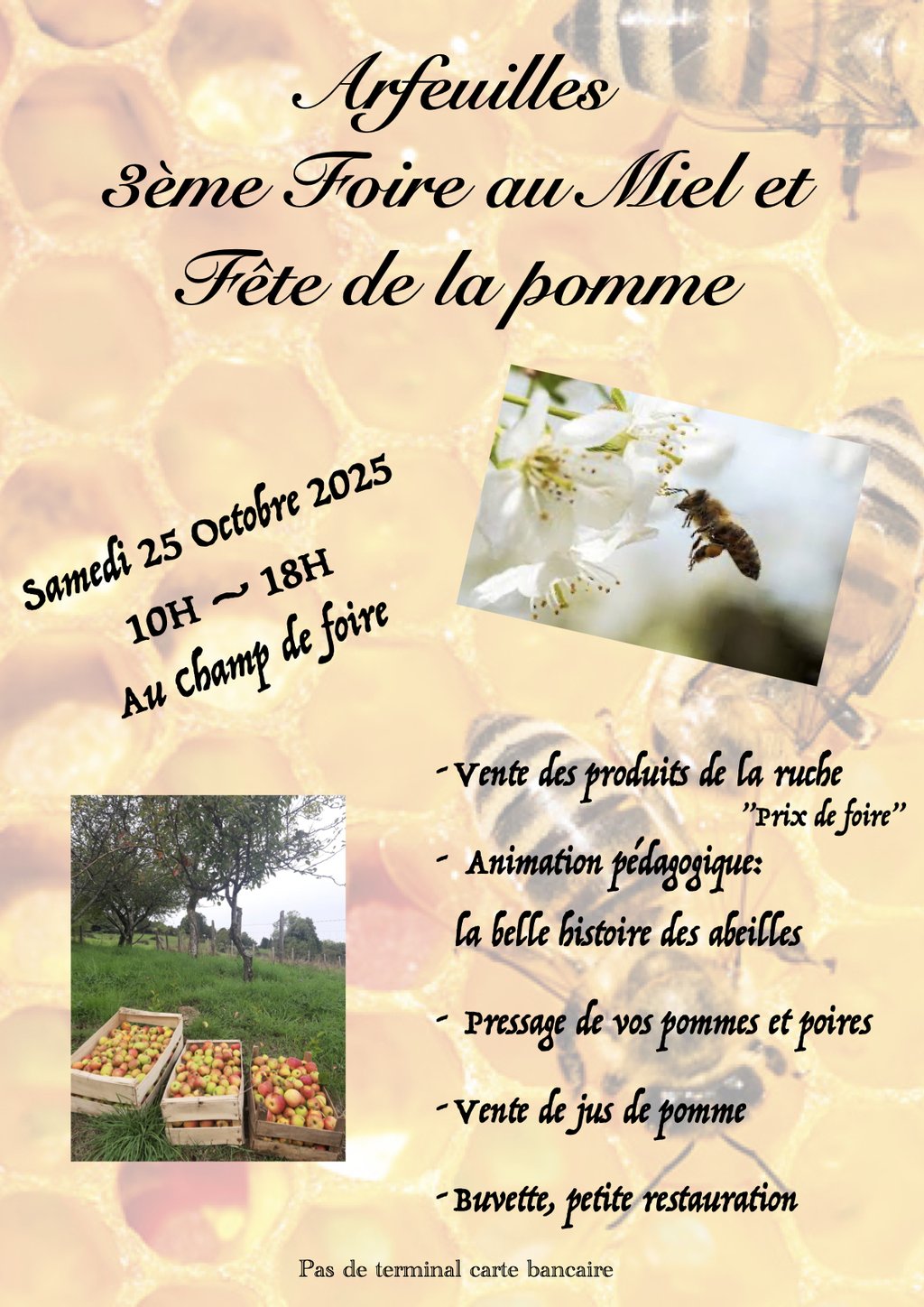 LA MUNICIPALITÉ D'ARFEUILLES EST HEUREUSE DE VOUS PROPOSER SA 3° FOIRE AU MIEL / FÊTE DE LA POMME.