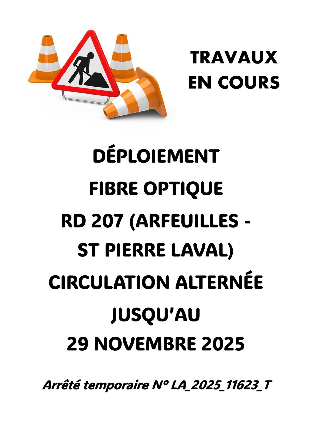 CIRCULATION ALTERNÉE ENTRE ARFEUILLES ET SAINT PIERRE LAVAL SUR LA RD207.