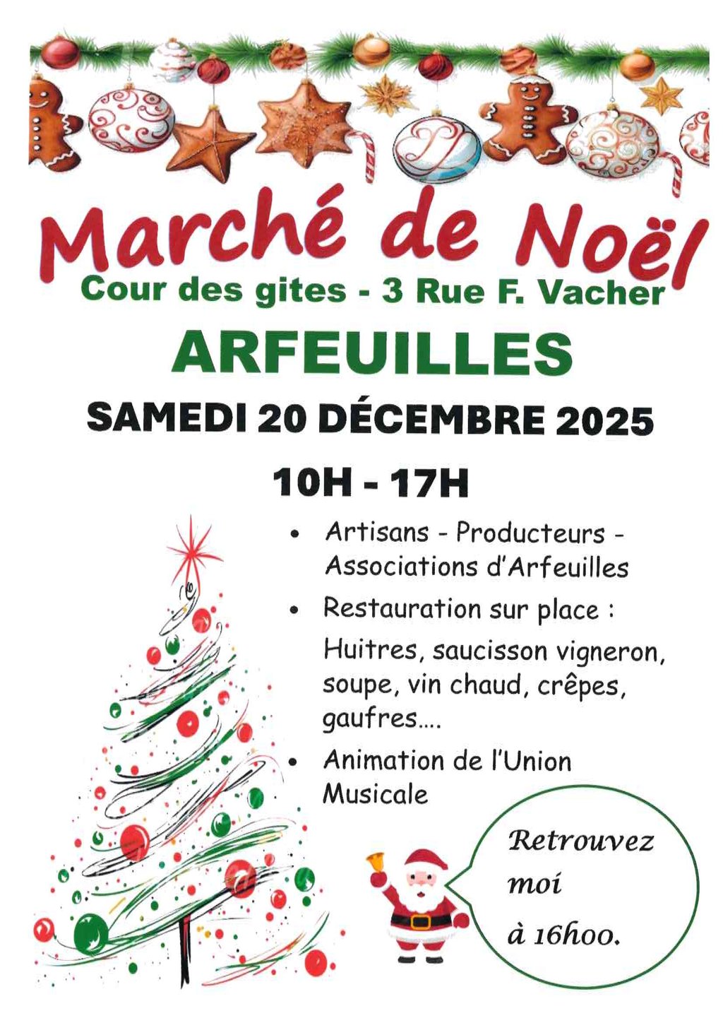 Ne manquez pas l'arrivée du Père Noël à 16h.